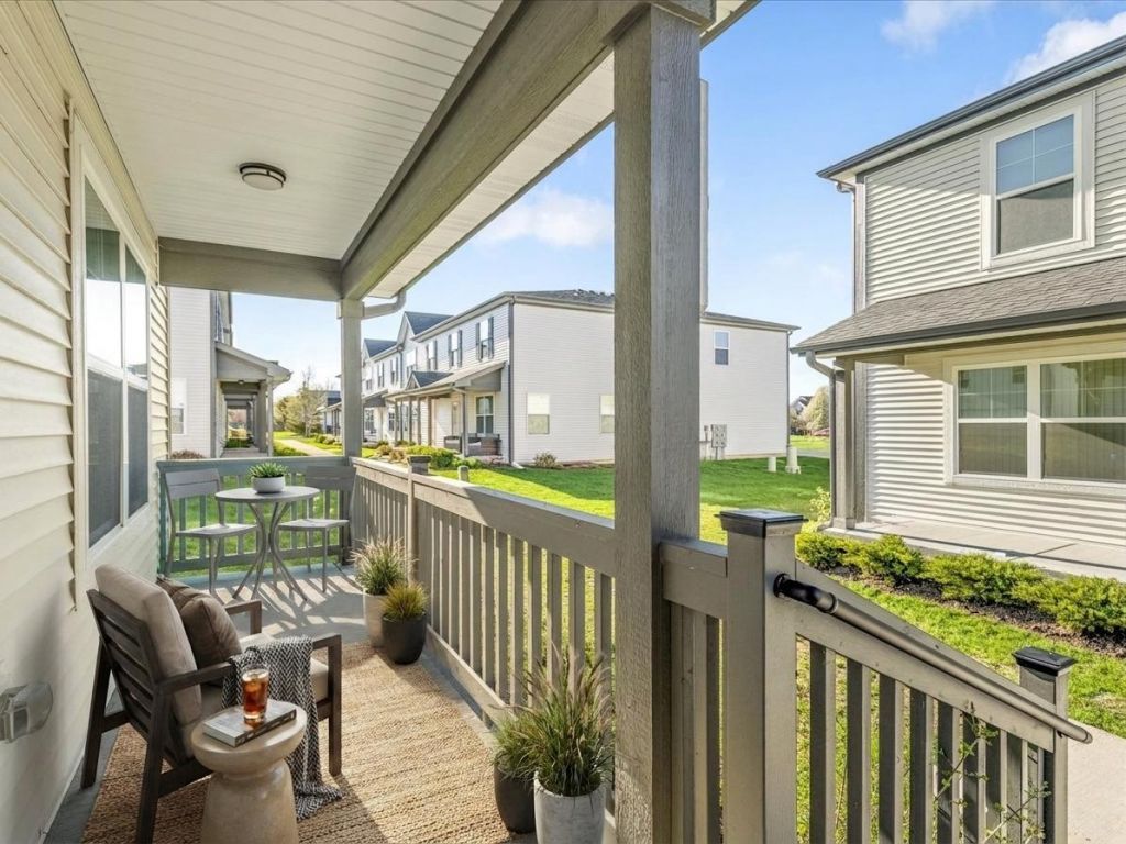 Spacious and beautifully appointed end-unit townhome built in 2023, offering the perfect blend of modern design, comfort, and low-maintenance living! This light-filled home features an open-concept floor plan with bright, sunny living spaces throughout. Boasting 4 bedrooms and 2.5 bathrooms, this home includes a full basement for added flexibility and storage. The primary suite features a large walk-in closet and a private bath. The guest bathroom includes a deep soaking tub, perfect for relaxing at the end of the day. The kitchen shines with quartz countertops, a new backsplash, and a full suite of stainless steel Whirlpool appliances, including the refrigerator. Laundry is conveniently located on the same level as the bedrooms, making everyday living even easier. Built with quality and efficiency in mind, this home features 2x6 construction with R21 insulation, R49 attic insulation, a high-efficiency furnace, and high-efficiency water heater. A radon mitigation system is already in place for added peace of mind. The oversized 2-car garage is fully insulated, drywalled, and painted-ideal for storage or a functional workspace. Enjoy true maintenance-free exterior living, with the association covering all exterior upkeep. Furniture is negotiable, with the option to purchase the home fully furnished, making this an incredible turnkey opportunity!