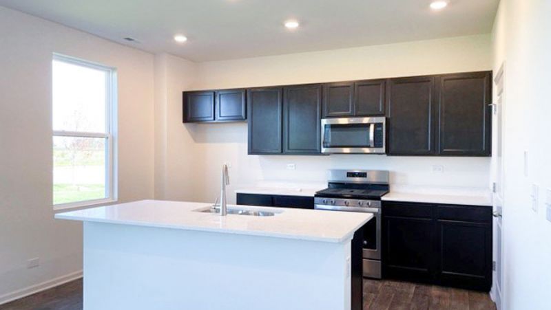 Envision yourself at 9986 Edgebrook Ln, Huntley Illinois, a beautiful new home in our Cider Grove Community. This 2-story home will be ready for you to move into in May! This home comes with a fully sodded yard. This Pendleton plan offers 2,155 square feet of living space with a flex room, 3 bedrooms, loft, 2.5 baths, full English basement with roughed in plumbing, and 9-foot ceilings on the first floor. Entertaining will be easy in this open-concept kitchen and family room layout with a large island with an overhang for stools, 42-inch designer cabinetry with soft close drawers and cabinets. Additionally, the kitchen features a walk-in pantry, modern stainless-steel appliances, quartz countertops, and easy-to-maintain luxury vinyl plank flooring. Enjoy your private getaway with your large primary bedroom and en suite bathroom with a raised height dual sink, quartz top vanity, and walk-in shower with fiberglass surround and clear glass shower doors. Convenient walk-in laundry room, 2 additional bedrooms with a full second bath and a linen closet. All Chicago homes include our Americas Smart Home Technology. Photos are of similar home and model home. Actual home built may vary.